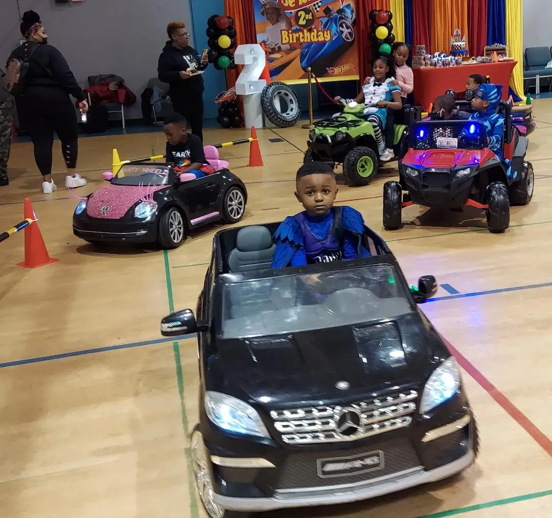 Kids 2 to 10 years old will enjoy hours of fun driving our fully functional, steering, turning, horn-blowing cars as they cruise or race within a simple obstacle course.